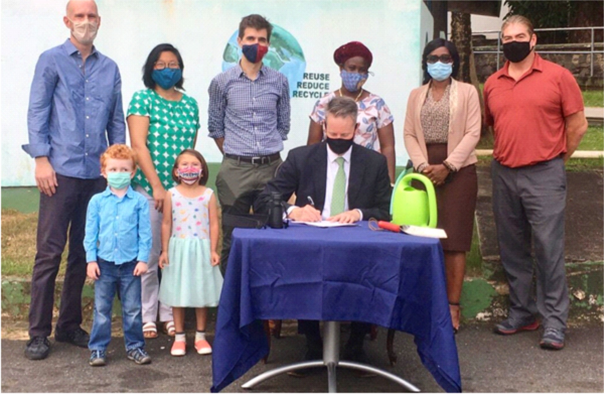 At World Wildlife Day celebrated March 3, 2021, United States Ambassador Michael McCarthy signed the Greening Diplomacy Initiative pledge to commit to sustainability, energy efficiency, and conservation. Members of the Embassy’s Green Team joined the Ambassador to show their support.
