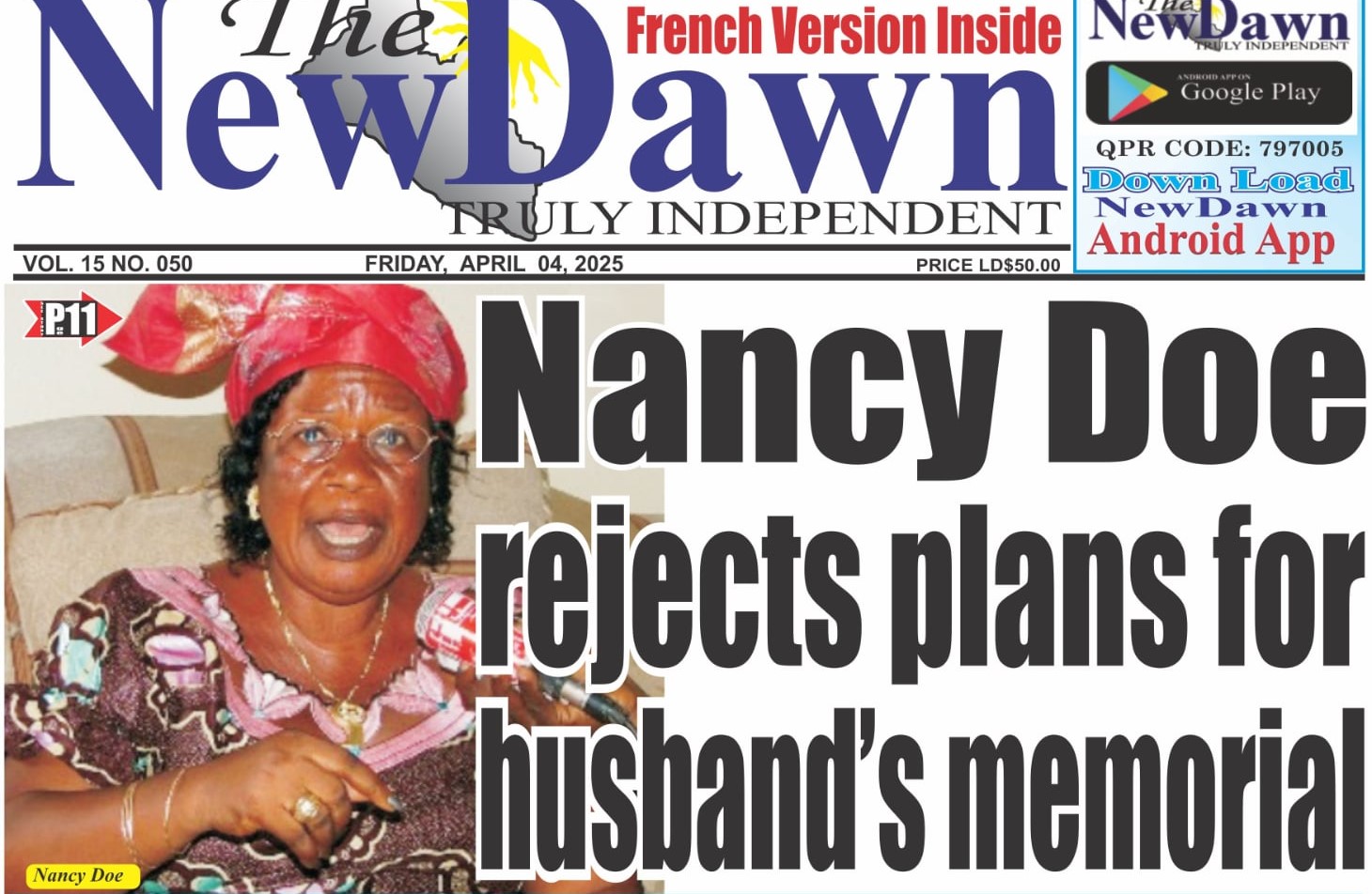 Former first lady Nancy B. Doe has rejected plans to memorialize her late husband former President Samuel K. Doe.