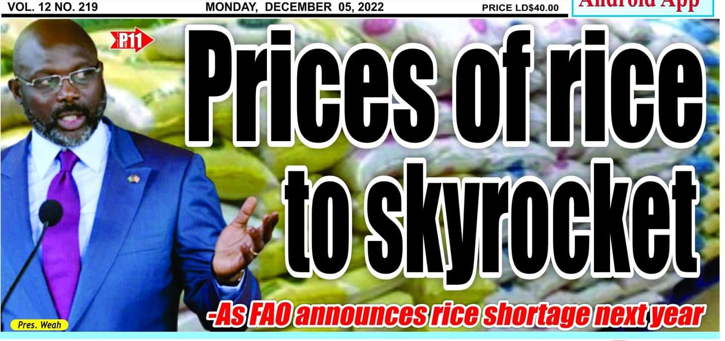 The news also comes as the Liberian government announced an increase in the whole sale and retail of rice here on the local market.